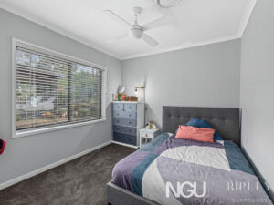 Positioned on a sprawling 4000sqm allotment, the home enjoys a commanding presence enhanced by a three-tier sandstone retaining wall extending 50 metres, creating a level and highly usable front yard perfect for outdoor play or entertaining. The quiet location ensures privacy while still providing convenient access to local amenities. Families benefit from proximity to highly regarded schools including WestMAC School and nearby Brassall State School, ensuring that education options are excellent.