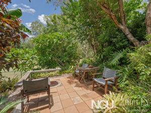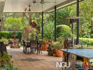 Step outside and the property truly takes on a resort-style identity. A massive covered outdoor entertaining area overlooks the recently refurbished mineral in-ground swimming pool, evoking the feel of a private retreat rather than a suburban home. This is a space designed for long lunches, sunset drinks and unhurried weekends, where the only soundtrack is the breeze through the trees. The surrounding gardens, dotted with fruiting olive and mango trees and anchored by a striking boab, further enhance the sense of being immersed in nature.