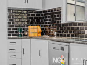 – Newly renovated open plan kitchen with electric stovetop, beautiful backsplash and large bench space.