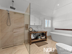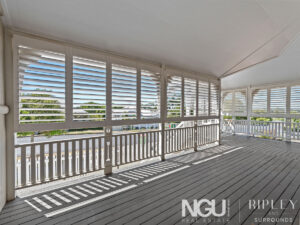 Behind the brand new front fence, the home reveals all the charm that lovers of traditional Queensland architecture hope to find. Ornate fretwork, stained glass detailing, soaring ceilings, breezeways, and beautiful VJ walls honour the era in which it was built, while tasteful updates ensure it performs effortlessly for modern family living.