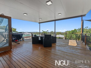Spanning approximately 50m², the covered rear deck is an extraordinary space that transforms the way you live. Effortlessly connected to the main living area, it becomes an extension of the home itself – ideal for entertaining on any scale, relaxed family dinners, or quiet evenings taking in the lights of Ipswich City. Elevated, private, and expansive, it is the kind of outdoor space that buyers search for and rarely find.