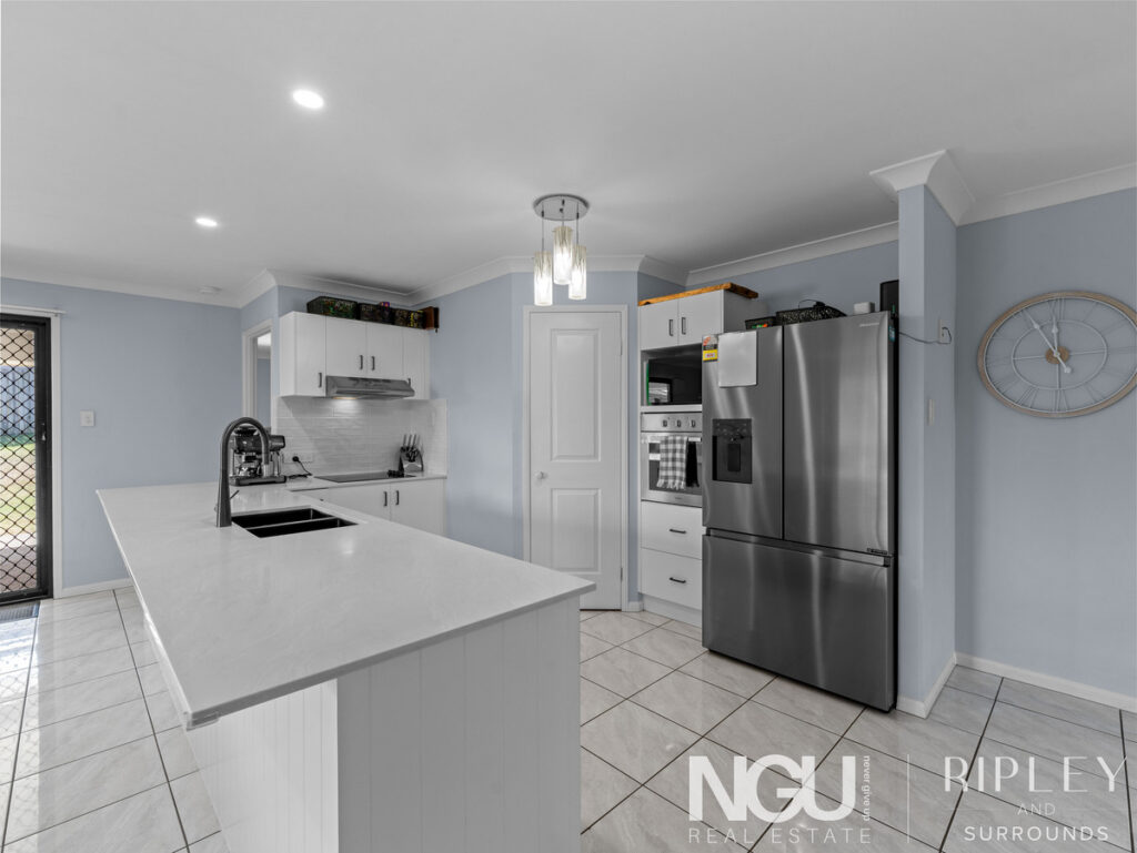 At the heart of the home is a light-filled open plan living and dining area, flowing seamlessly into a well-appointed kitchen featuring stone benchtops, electric cooking and an abundance of storage. Perfect for busy family life and entertaining.